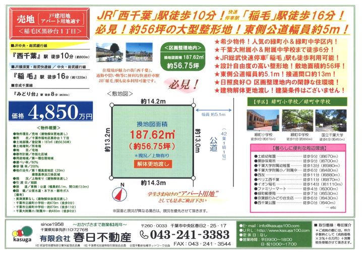 西千葉のアパート、マンション、賃貸、売買情報の春日不動産。千葉大生、千葉経済大生、敬愛大生、東洋理容美容専門学生のお部屋探しはお任せください。