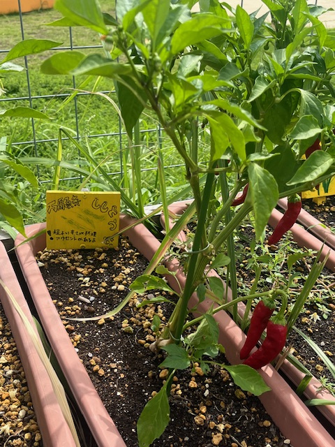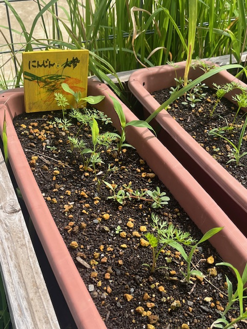 オレンジと赤い色のししとうです。隣には『にんじん』『春菊』のプランターがありカワイイ葉っぱが出てきていました。通るたびに大きくなったなぁとか芽が増えてるとか・・ほっこりした気持ちになるのと同時に何故か今日も頑張ろう!っていう気持ちになります。